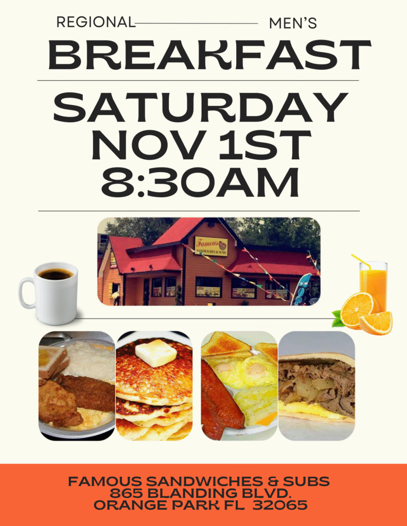 Mark your calendars! The Regional Men’s Fellowship is hosting a special breakfast gathering on Saturday, November 1, 2025, right here in Orange Park.